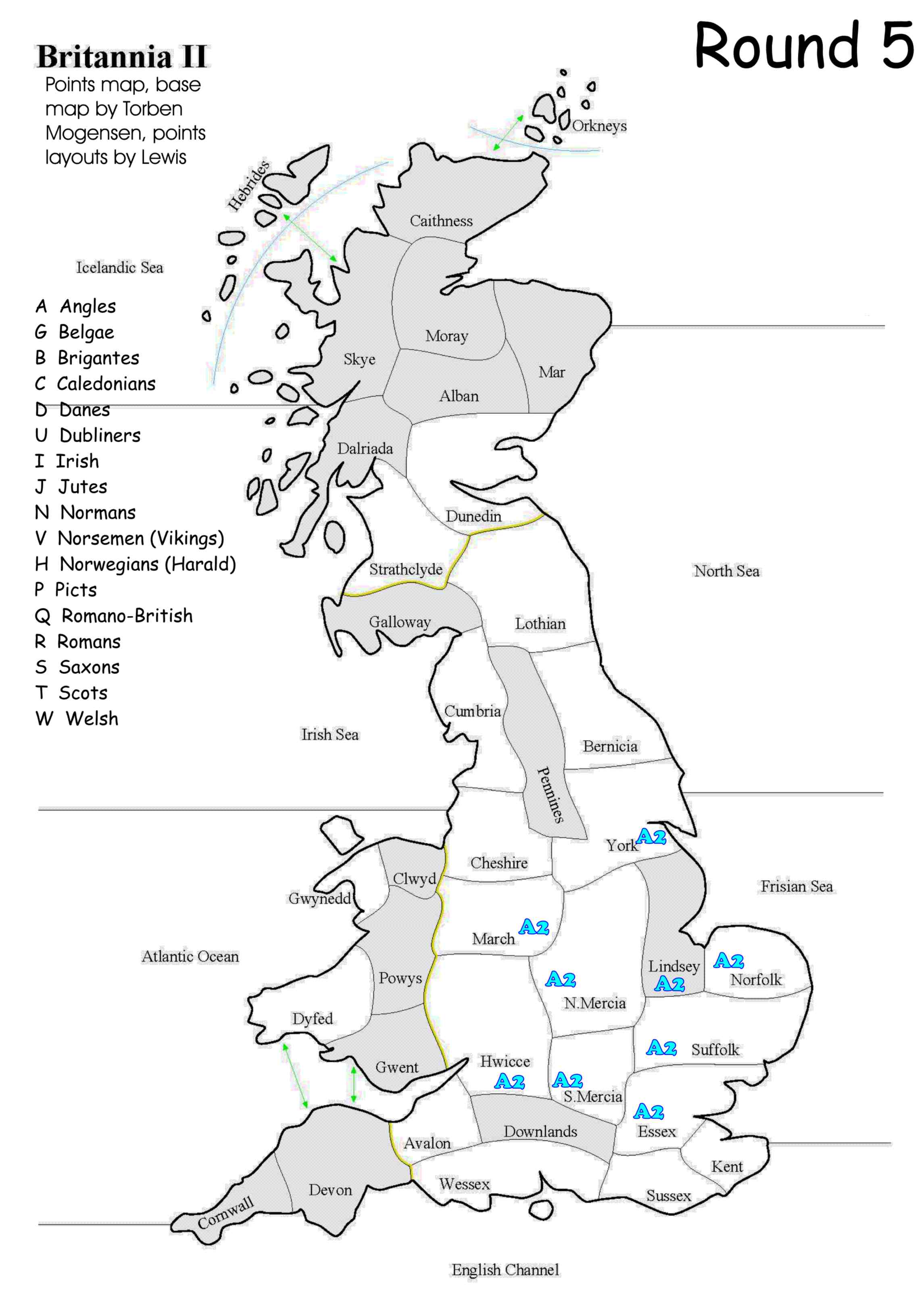 This page will provide links to "point maps", visual aids to scoring in Britannia Second Edition (FFG). I am (4 September) about halfway through the project, links forthcoming. Reproduction of these maps for individual use is permitted. My thanks to Torben Mogensen, who created the base map.